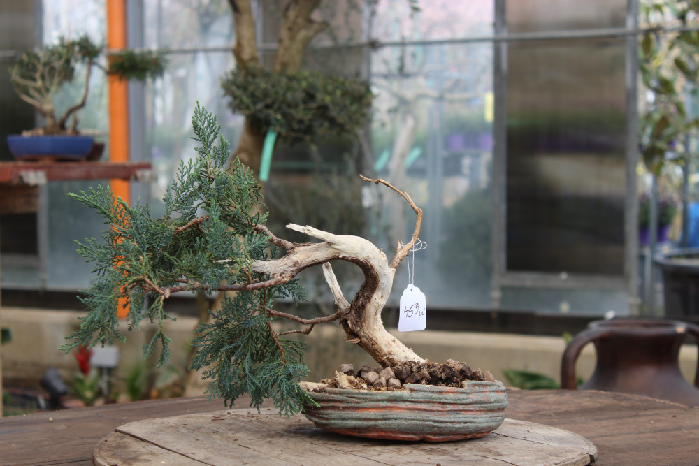 Juniperus chinensis (ienupărul chinezesc) este un bonsai clasic, apreciat pentru frunzișul său verde dens și aspectul elegant. Este rezistent și ușor de întreținut, ideal pentru începători și pasionați.